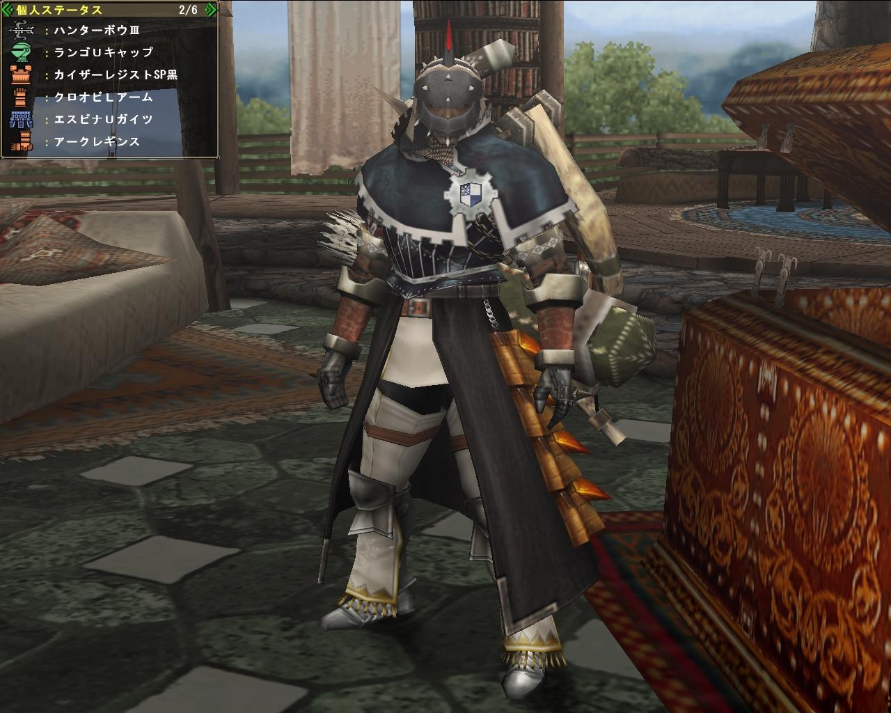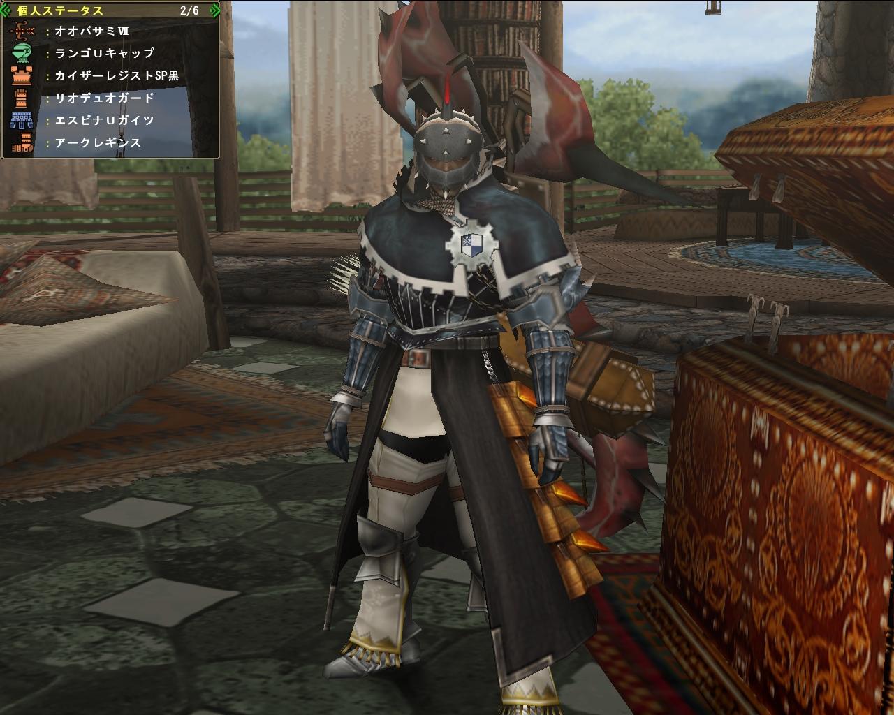 攻撃力UP【大】,見切り+3,火事場力+2,高級耳栓,通常弾・連射矢威力UP